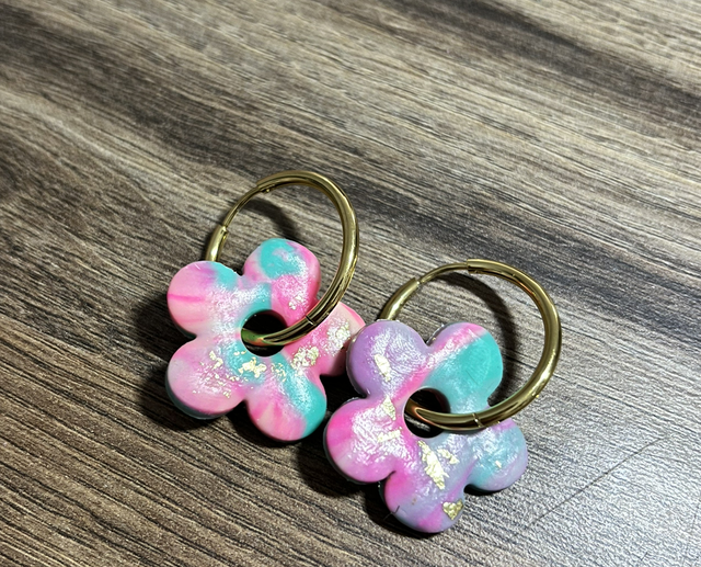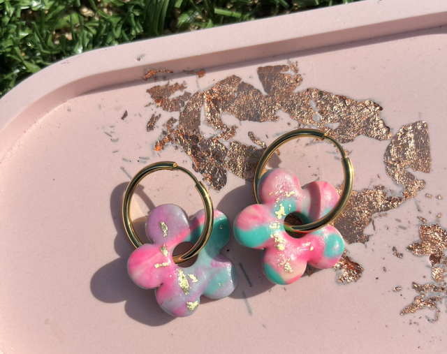 Pampille en pâte polymère vernie assurant résistance et brillance et créoles en acier inoxydable