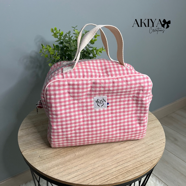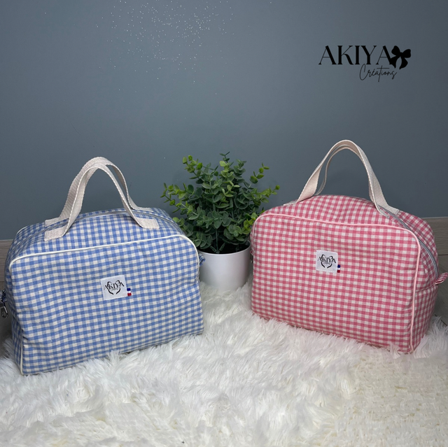Voici le vanity Adèle ☺️ une jolie trousse de toilette avec son joli imprimé Vichy rose ou bleu. Pratique, ce vanity possède 2 petites anses pour le transporter facilement.