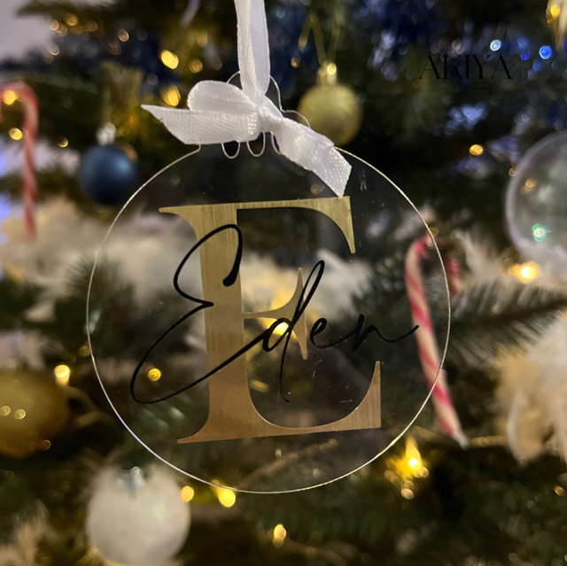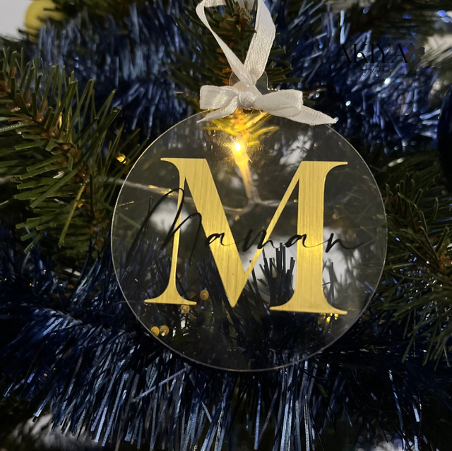 Je vous propose de jolies boules de Noël transparentes et personnalisées avec un prénom et son initiale !!