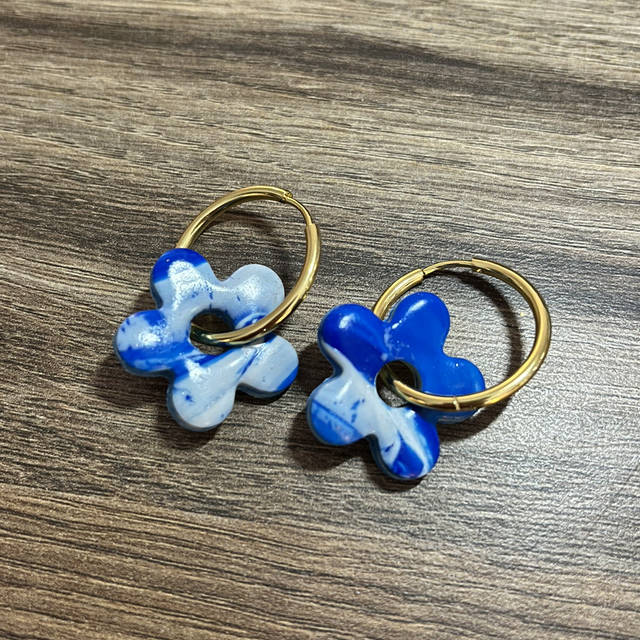 Pampille en pâte polymère vernie assurant résistance et brillance et créoles en acier inoxydable